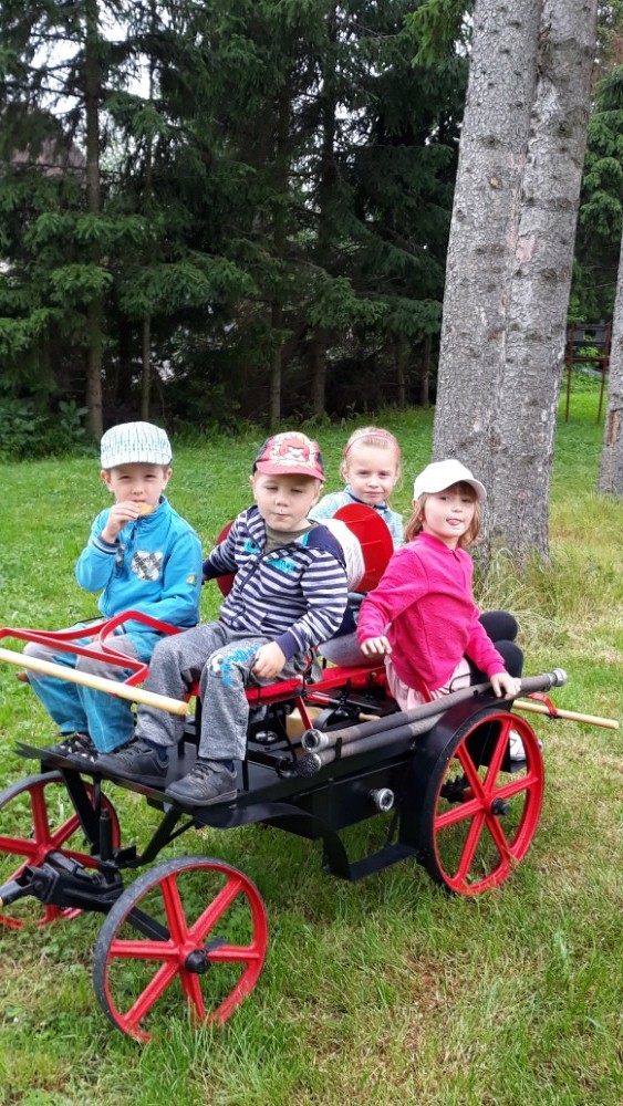 Uhlířskojanovičtí dobrovolní hasiči připravili 7.6. 2019 páteční program pro školku z Miskovic. Po příjezdu na Hasičskou zbrojnici II., přivítal obě třídy zástupce velitele. Děti věnovali dobrovolným hasičům model hasicího přístroje, který doplnil již několik modelů, vyrobených pro tuto příležitost . Poté se třídy rozdělily. Jedna část odjela na koupaliště, kde byla připravena projížďka na motorovém člunu. Druhá skupina pak mohla vyzkoušet připravenou překážkovou dráhu a hašení domečku. Následovala jízda na šlapacích autíčkách a představení nové techniky CAS 20 SCANIA. Na koupališti děti navštívil i vodník Koupák, který prosil děti o pomoc s hledáním ztracených hrnečků. Za tuto pomoc pak děti odměnil netradiční pohádkou o vodníkovi a huse.